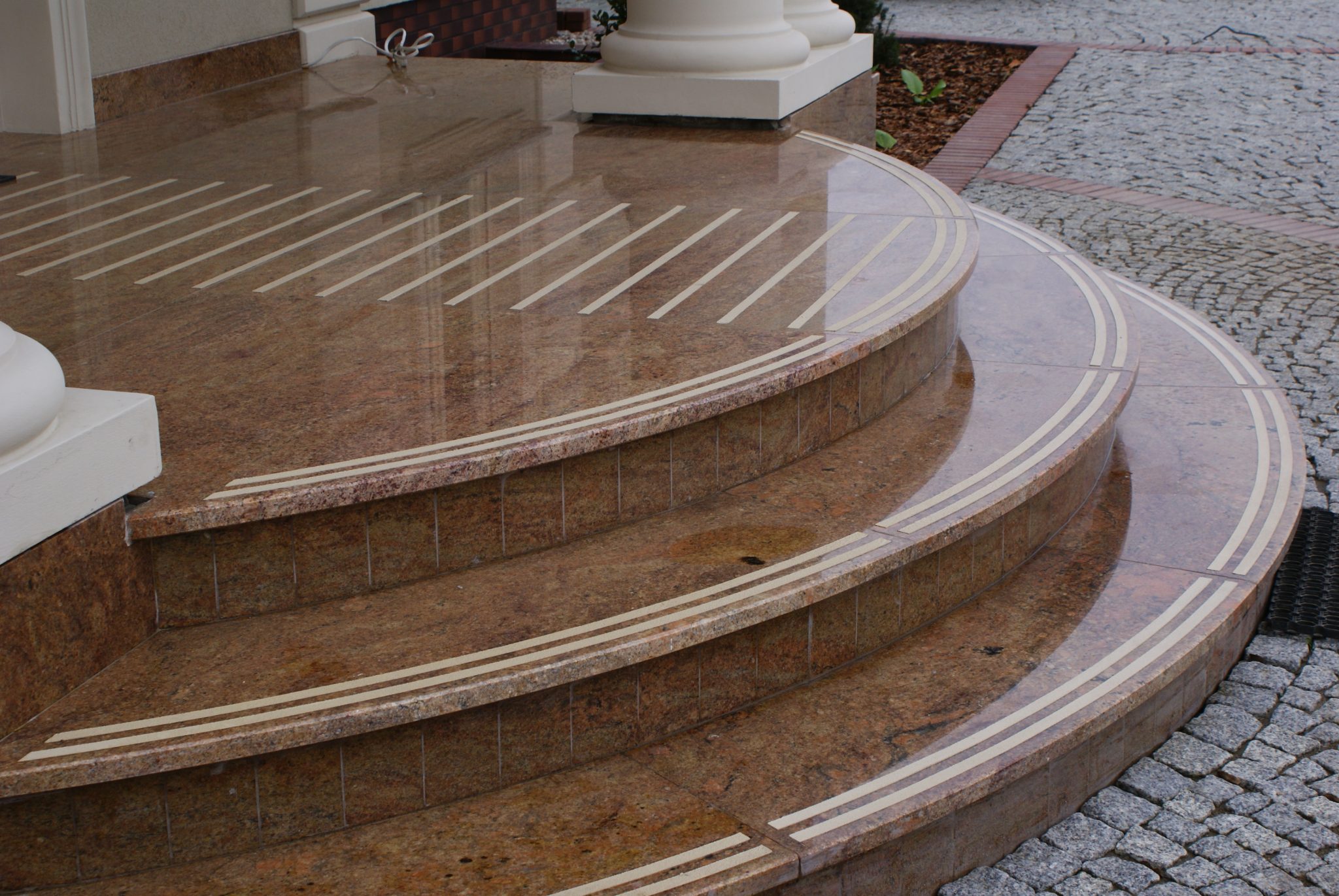 Schody to użytkowy element każdego domu ale piękne schody mogą być również niezwykłą ozdobną, którą przykuje uwagę każdego. Kamień to najlepszy materiał na schody. Jego walory użytkowe takie jak trwałość i łatwość pielęgnacji idą w parze z walorami estetycznymi, dzięki czemu do każdego domu można dobrać odpowiedni kamień na schody zewnętrzne podkreślający architekturę i nadający wyjątkowy charakter naszemu budynkowi z zewnątrz.